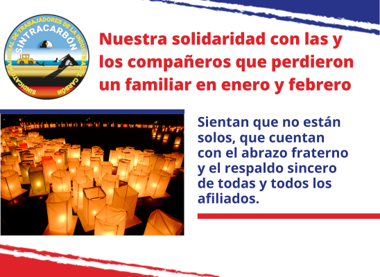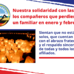 Nuestra solidaridad con las y los compañeros que perdieron un familiar en enero y febrero 162 vistas | publicado el marzo 6, 2026