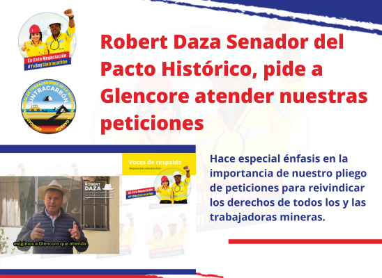 Robert Daza Senador del Pacto Histórico, pide a Glencore atender nuestras peticiones.