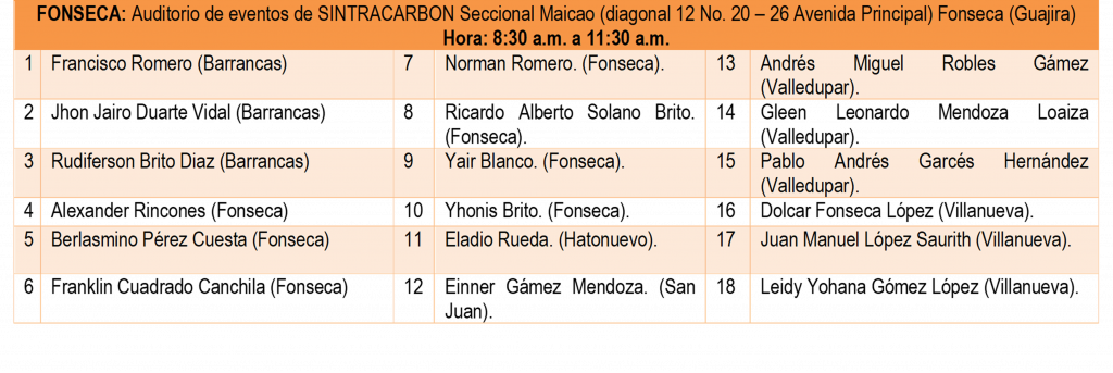 Nota: aquellos compañeros delegados, que quieran participar para esta fecha 26 de octubre de 2022, porque están en vacaciones, incapacitados o en artículo 140, pueden contactarnos en los siguientes teléfonos. 3175179916; 3173674003; 3175179914: 3155516151.