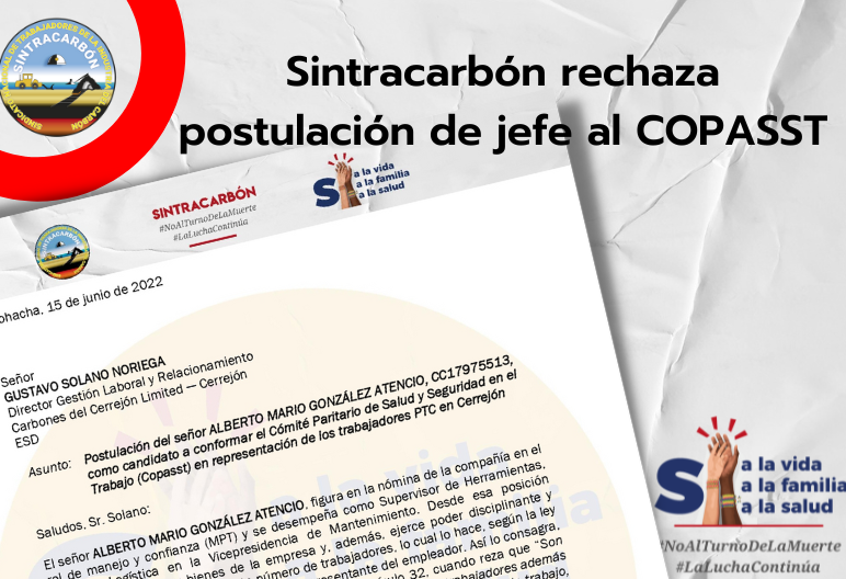 Por medio de la siguiente carta, nuestra organización manifiesta y argumenta su inconformidad con una postulación para conformar el COPASST que considera antiética e ilegal.